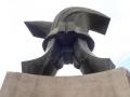 Palog borca oplakuje anđeoska figura, ispod je veliki reljef sa masovnim prizorom, sa druge strane su ploče sa posvetom i imenima.