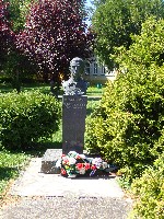 Na savremenom objektu koji obuhvata dve garaže, a verovatno je najbliži mestu gde se rodna kuća nalazila, stoji spomen ploča.