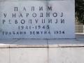 Nalazi se na Širokom popločanom trgu u centru Zemuna. Na nižem delu postamenta postaljen je reljef sa scenama iz NOB, a na vrhu je statua žene raširenih ruku.