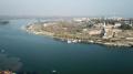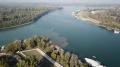 U kadru se vide: reka Sava, rukavac Dunava koji obilazi Ratno ostrvo, pristanište ispod kalemegdanske tvrđave i plato na novobeogradskoj strani.