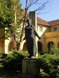 Interesantani detalji na pročelju - balkon na prvom i četiri statuete iznad njega, na drugom spratu.