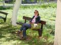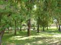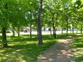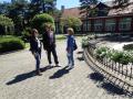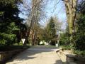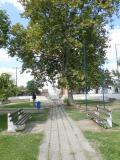 Okružena je održavanim zelenilom i drvećem ispod koga su klupe za odmor.