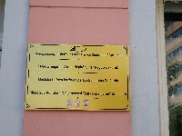 Iznad ulaznih vrata, okačen je natpis na štampanoj tkanini: